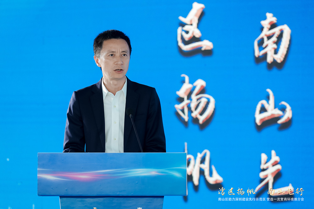 推介會伊始,南山區(qū)委副書記、區(qū)長黃湘岳做了南山營商環(huán)境的主題致辭。