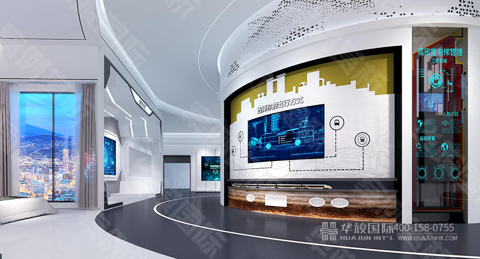 封閉空間是用限定的高度把實體轉(zhuǎn)起來,讓空間有很強的隔離性,封閉空間并不是指的展廳之間的各個通道比較少,而是將整個展廳里的小展廳更好地鏈接而不見光的情況,展廳的高科技都是通過設備和設計的主題來展示。